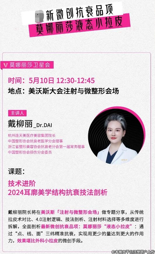 今年莫娜丽莎将在美沃斯大会,传承“耳廓美学”核心价值,展示4.0打法的少量注射,提拉抗衰的前沿技术。5月10日,我们杭州“再”见!