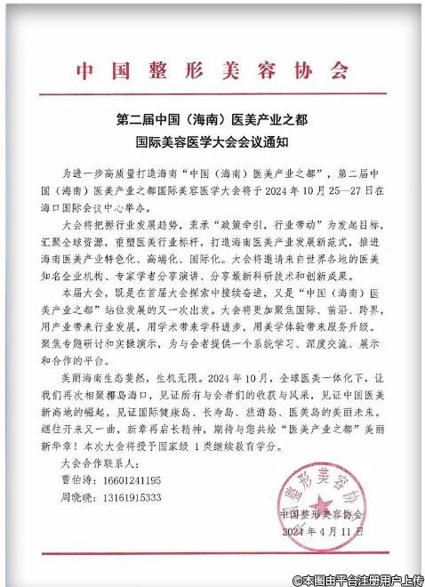 第二届中国(海南)医美产业之都国际美容医学大会会议通知