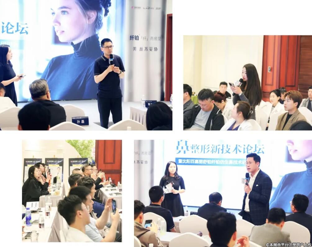 现场,中国医师协会美容与整形医师分会鼻整形学组委员曹海峰院长、百嘉丽眼鼻综合整形与面部年轻化专家王滨福教授、舒铂-纤铂全国销售总监黄子杰先生分别围绕《“纤铂”在鼻尖整形中的应用体会》、《舒铂在鼻整形中的设计理念》、《舒铂·纤铂鼻尖材料的迭代应用》课题展开深入的交流与研讨。