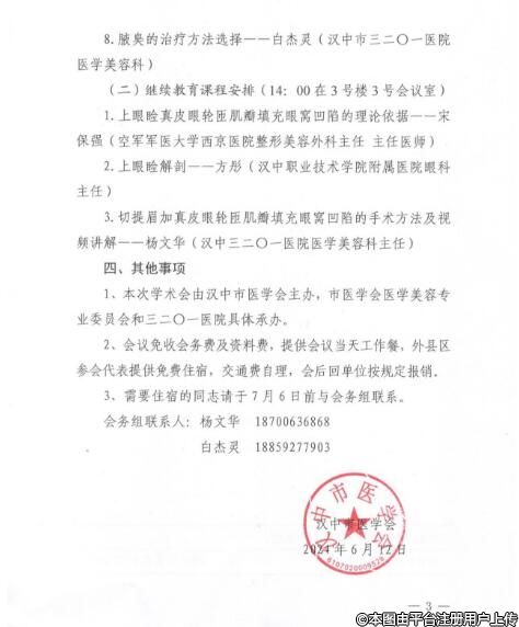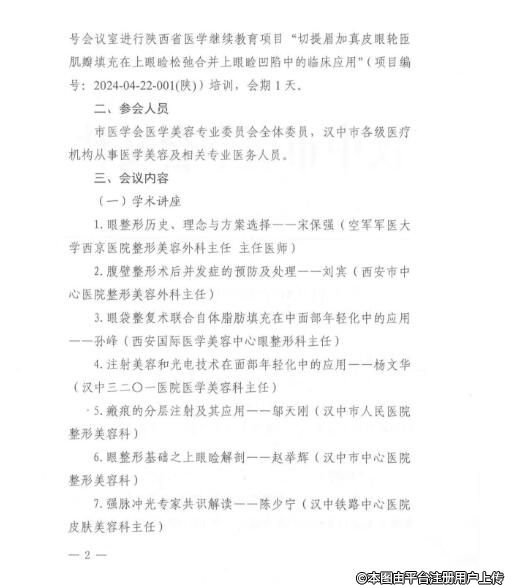 为进一步提升我市各医疗机构医学美容技术水平,促进医学美容专业学术交流,决定召开汉中市医学美容专业学术会议,同时进行陕西省医学继续教育项目授课培训。现将有关事项通知如下:
