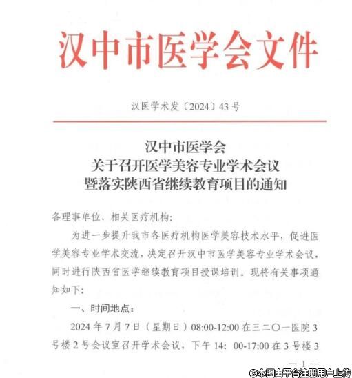 汉医学术发〔2024〕43号 关于召开医学美容专业学术会议暨落实陕西省继续教育项目的通知