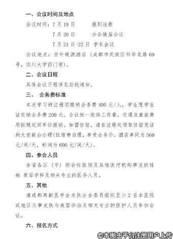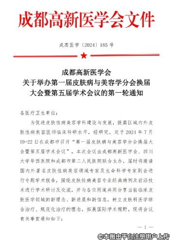 为促进皮肤性病美容学科建设与发展,提高区域内外皮肤性病美容医师临床科研水平,经研究,定于2024年7月19日-22日在成都市召开“第一届皮肤病与美容学分会换届大会暨第五届学术会议”。