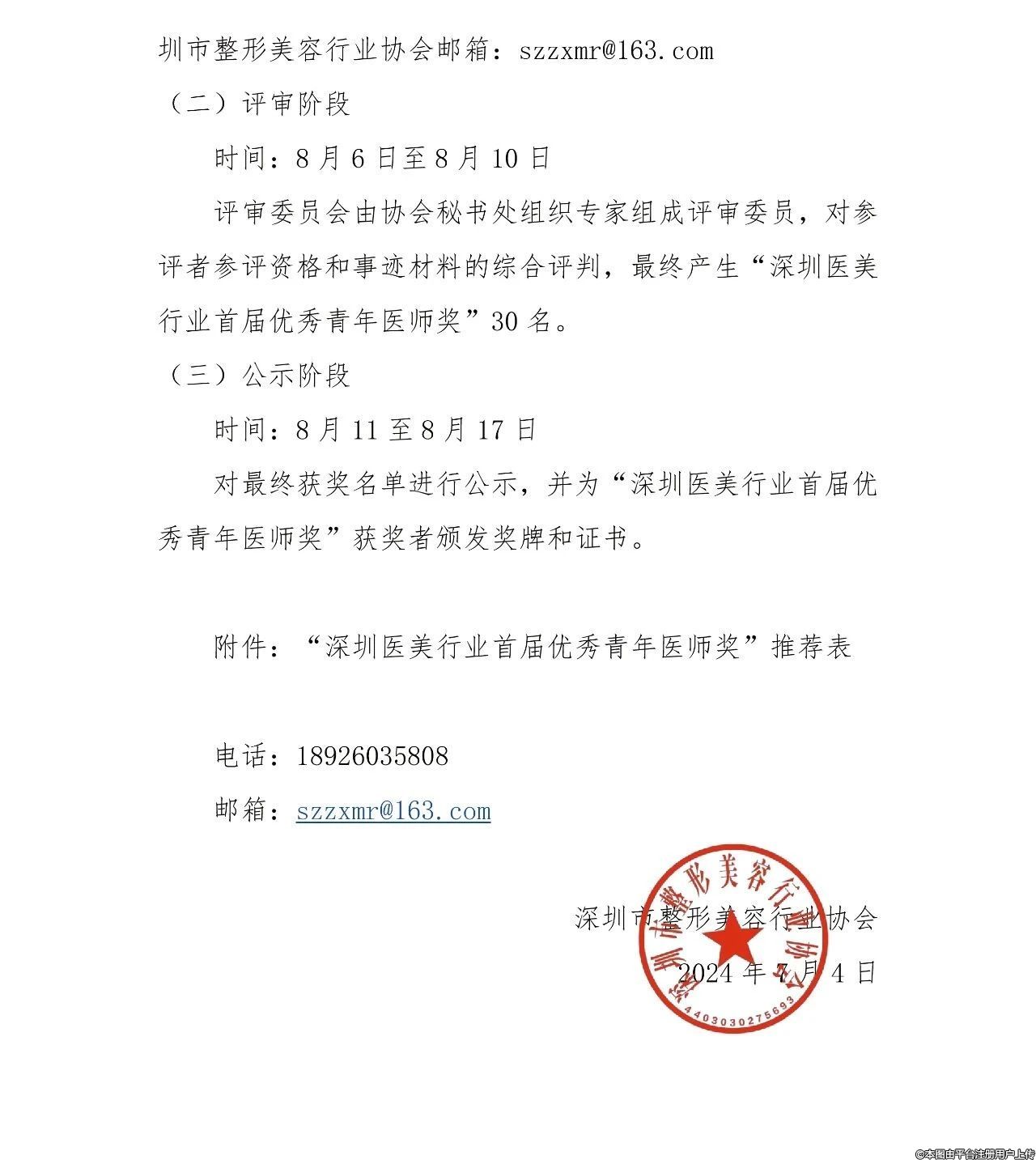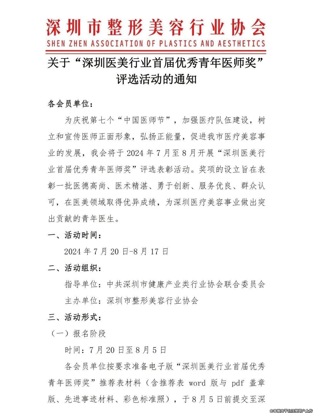 关于“深圳医美行业首届优秀青年医师奖”评选活动的通知