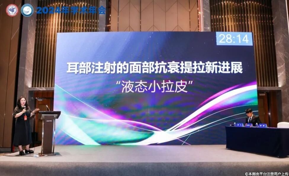 大会现场,特邀专家刘杨医生分享解读了报告《耳廓美学4.0:耳部注射的面部抗衰提拉新进展》。