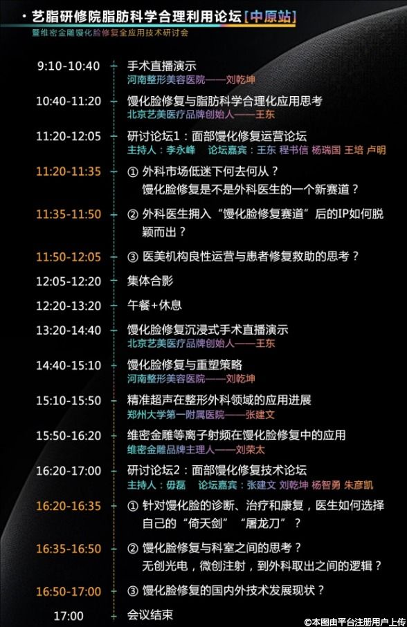 艺脂研修院专注构建脂肪医美专科、专研、专营一站式赋能平台。此次中原站论坛由河南整形美容医院承办,是继艺脂东方·脂肪医美价值创变大会后首次地方性脂肪论坛,旨在将更多的脂肪医美新思考、新技术、新趋势、新应用惠及地方与全国,通过4大课题分享、6大话题讨论、2场手术直播演示,让更多医者及行业同仁精准拥抱馒化热点、打破传统的脂肪医美认知,带来在项目定位、临床应用、营销运营上的新知创变,感受脂肪医美的学术魅力与市场价值。