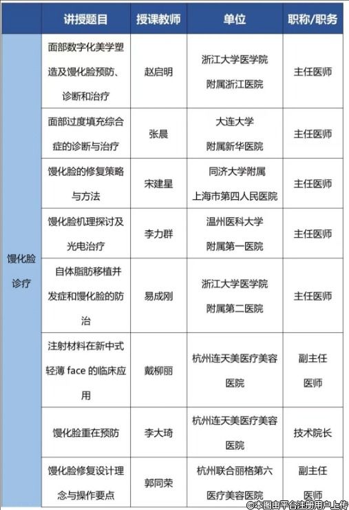 《抗衰老医学(馒化脸)新技术新进展学习班》课程表