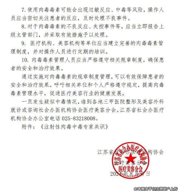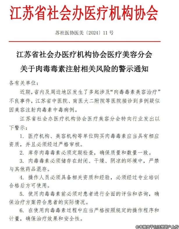 江苏省社会办医疗机构协会医疗美容分会关于肉毒毒素注射相关风险的警示通知