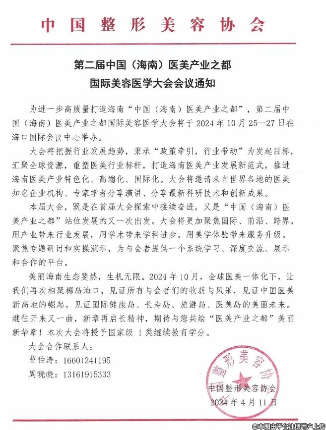 第二届中国(海南)医美产业之都国际美容医学大会通知
