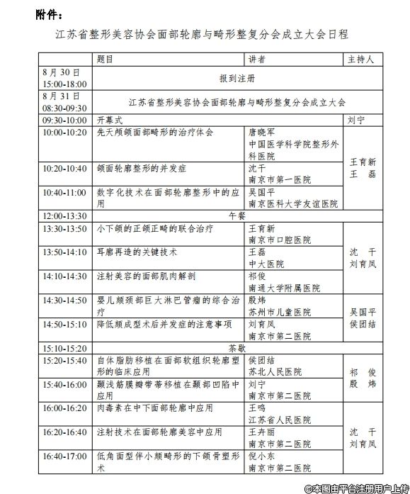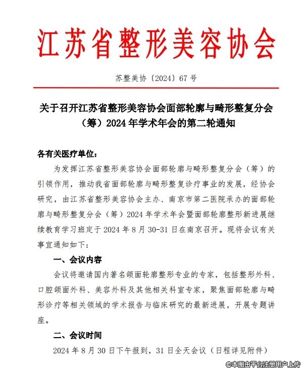 江苏省整形美容协会面部轮廓与畸形整复分会第二轮通知