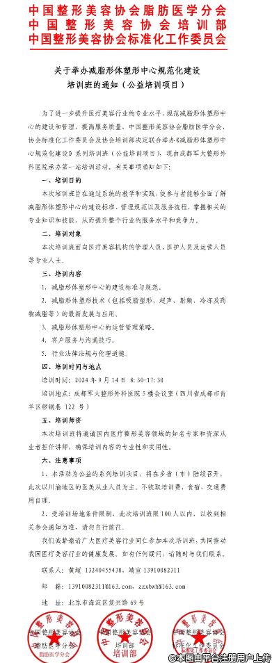 我们诚挚邀请广大医疗美容行业同仁参加本次培训班,共同推动我国医疗美容行业的健康发展。如有任何疑问,请随时与我们联系。