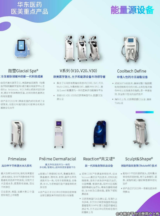 截止目前,华东医药在医美领域已拥有“微创+无创”医美国际化高端产品38款,其中海内外已上市产品达24款,在研全球创新产品14款,产品组合覆盖面部及身体填充、埋线、皮肤管理、身体塑形、脱毛、私密修复等非手术类主流医美领域。