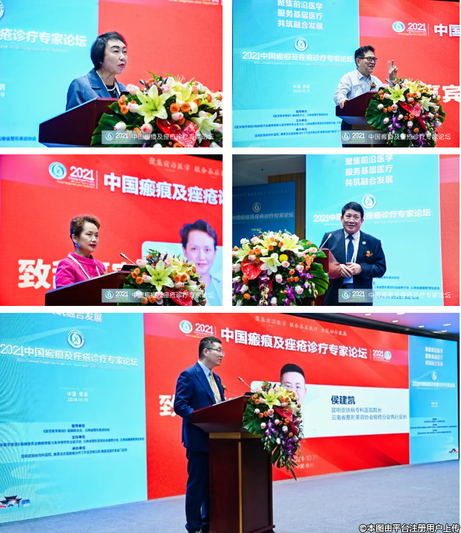 全国瘢痕治疗学科带头人蔡景龙教授、云南省整形美容协会痤疮分会会长邹勇莉教授担任大会主席,云南省整形美容协会痤疮分会执行会长、昆明皮肤病专科医院侯建凯院长任执行主席,《医学美学美容》杂志社主编辛映继、云南省整形美容协会党支部书记兼秘书长李晋豫代表本次会议的主办方出席开幕式,延边大学附属医院总院院长、国家B类人才金哲虎教授、上海交通大学附属同仁医院宋宁静教授、北京中日友好医院王继英教授、重庆科卫瘢痕医学研究所杨东运教授、昆明皮肤病专科医院业务院长邬继坤、皮肤外科主任杨永贵、激光物理治疗中心业务主任田松等全国17位瘢痕、痤疮领域专家莅会主讲,针对新时期瘢痕及痤疮防治的临床热点、难点问题展开深入探讨,为现场200余位临床参会医学工作者及线上10万余名观众带来了一场精彩的学术盛会。