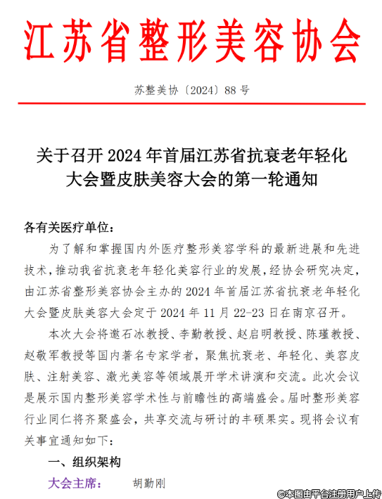关于召开2024年首届江苏省抗衰老年轻化大会暨皮肤美容大会的第一轮通知