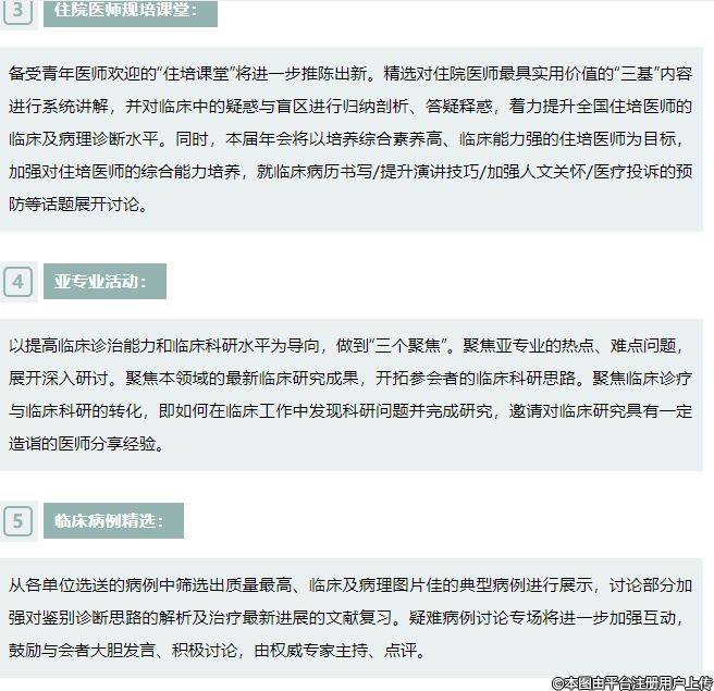 2)提能培训:聚焦临床热点、焦点、难点问题,邀请权威专家做专题报告,打造“学术制高点”的同时,加强对临床中治疗困难的常见病的研讨;增强临床医师核心竞争力的关键,着力提升与会者临床诊疗与临床科研的转化能力,设立“临床研究成果专场”;