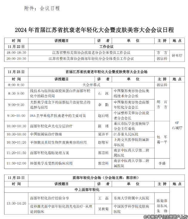 2024年首届江苏省抗衰老年轻化大会暨皮肤美容大会会议日程