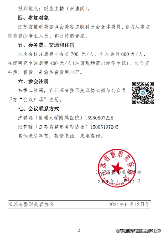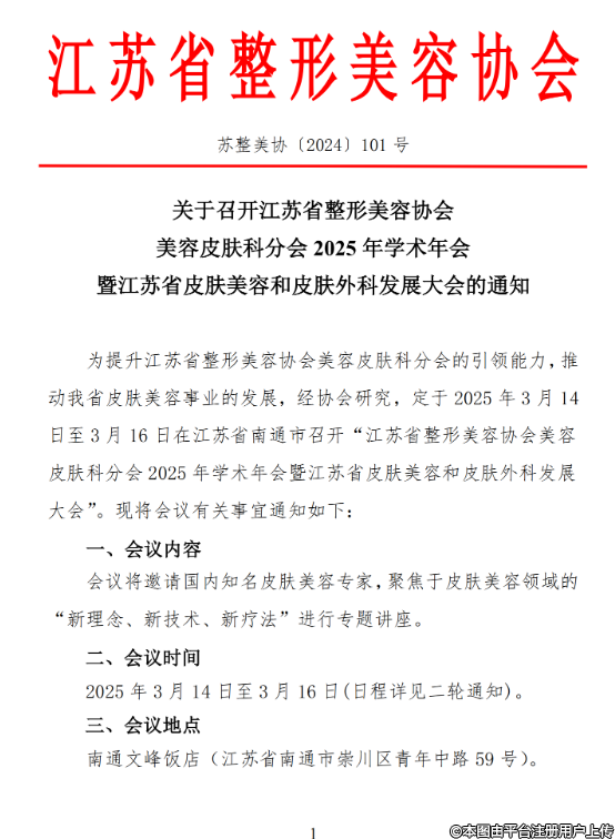 关于召开江苏省整形美容协会美容皮肤科分会 2025 年学术年会暨江苏省皮肤美容和皮肤外科发展大会的通知