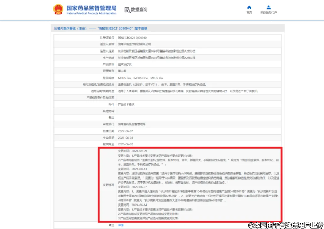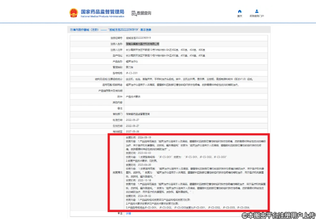 ▲ 湘械注准20222090919(湖南尖峰激光医疗科技有限公司)