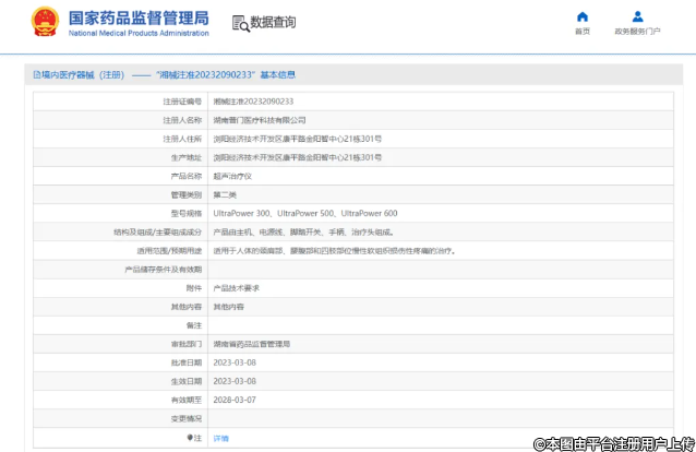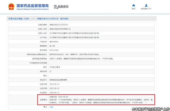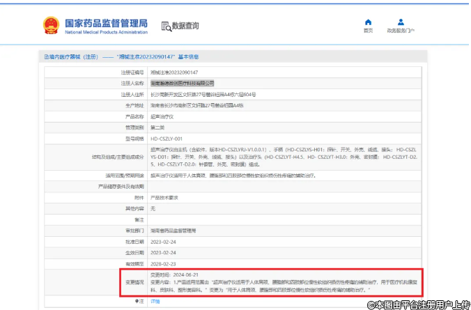 国家药品监督管理局调整湖南7家超声治疗仪适用范围
