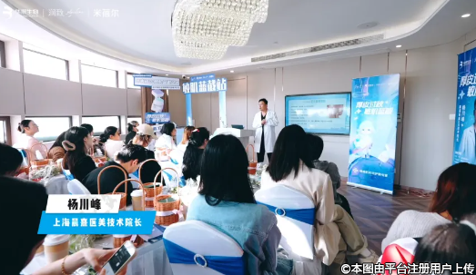 紧接着,上海晨熹医美技术院长杨川峰以“秋冬‘好’皮肤——敏感肌肤治养一体方案”为主题,为嘉宾们带来了一场精彩的分享。他深入剖析了秋冬季节敏感肌肤的成因,并介绍了如何通过科学的配方与专业的技术,为肌肤提供深层的滋养与修复。