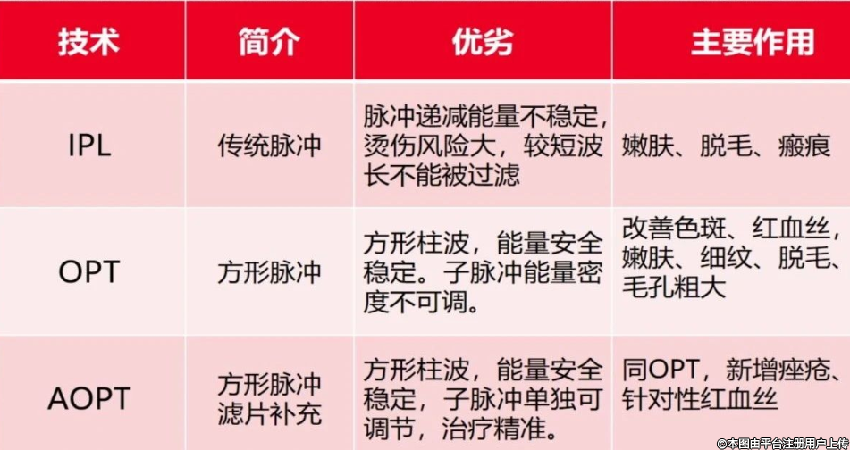 从IPL到AOPT,技术的迭代就是能量控制逐渐精准化的过程: