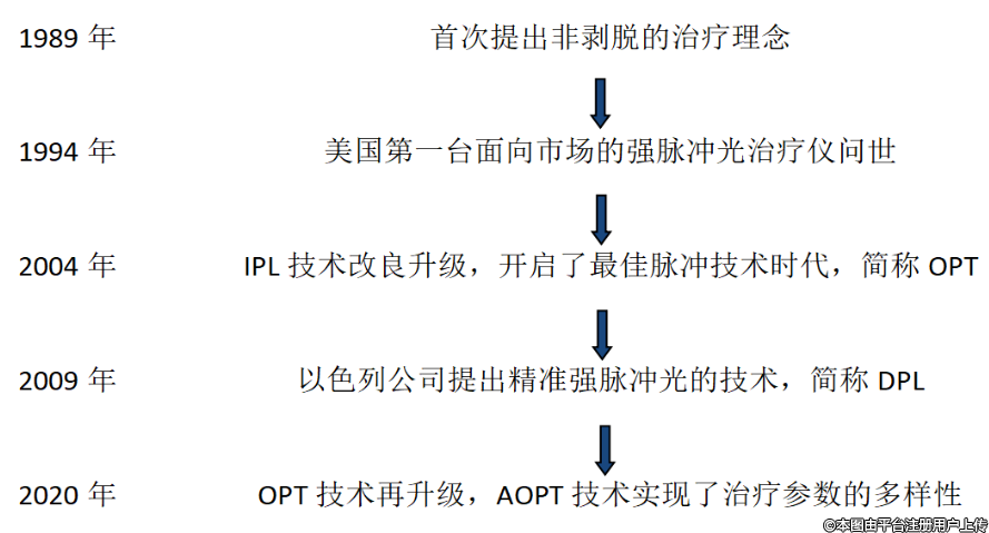 这与强脉冲光的技术迭代密切相关,纵观强脉冲光的发展史: