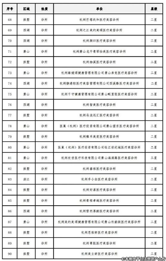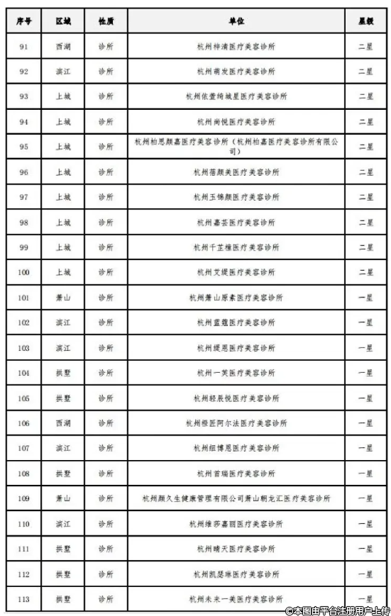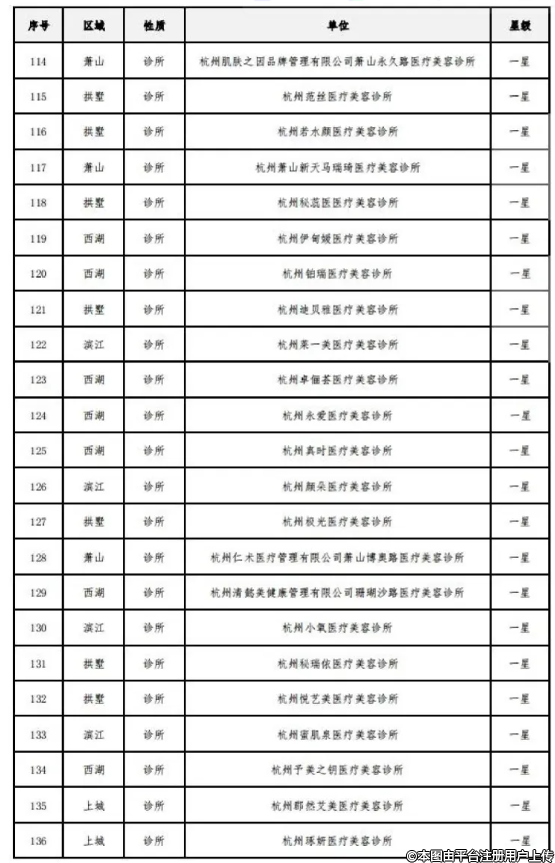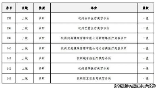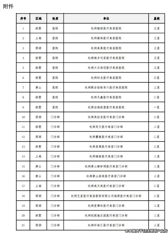 附件:《杭州市医疗美容机构规范化星级评价结果》