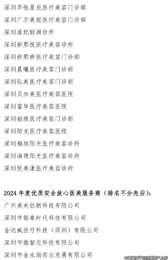 关于 2024年度优质安全放心医美机构(服务商)评选结果的公示