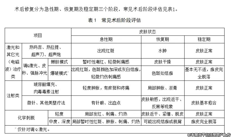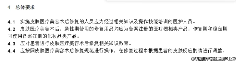 规范中明确规定了皮肤医疗美容术后修复的总体要求、适用范围和禁忌、修复阶段及用品、修复评估、操作规范以及并发症处理等多方面内容。尤其强调了术后修复的关键重要性,并提出了一系列核心原则。