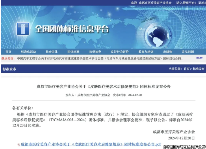 团体标准 | 《皮肤医疗美容术后修复规范》团体标准发布公告