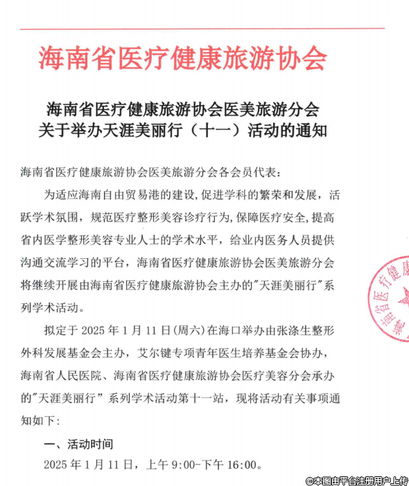 海南省医疗健康旅游协会医美旅游分会关于举办天涯美丽行(十一)活动的通知