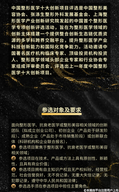 1、参选项目聚焦于整形医学、抗衰老医学或整形美容相关领域;