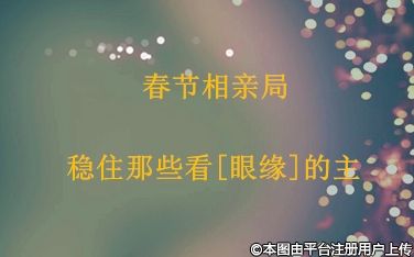 春节相亲局 稳住那些看[眼缘]的主