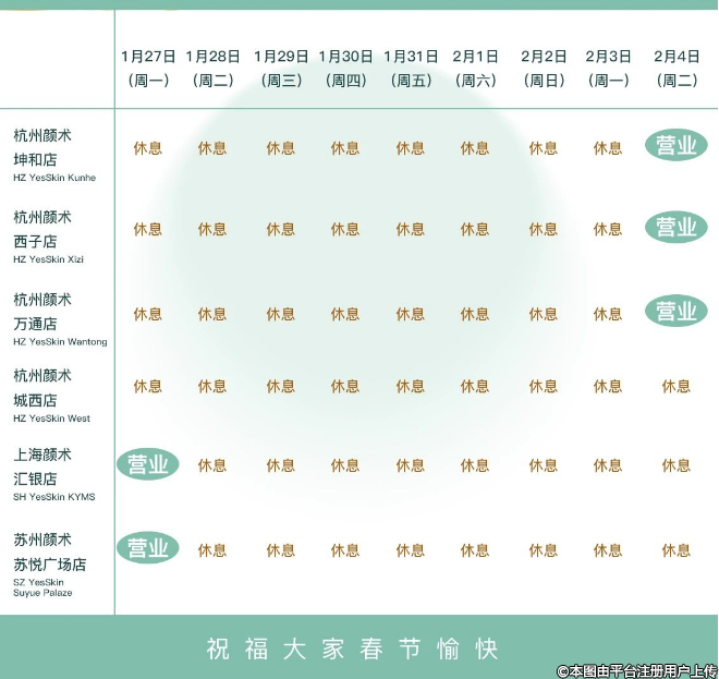 颜术医美春节放假安排如下: