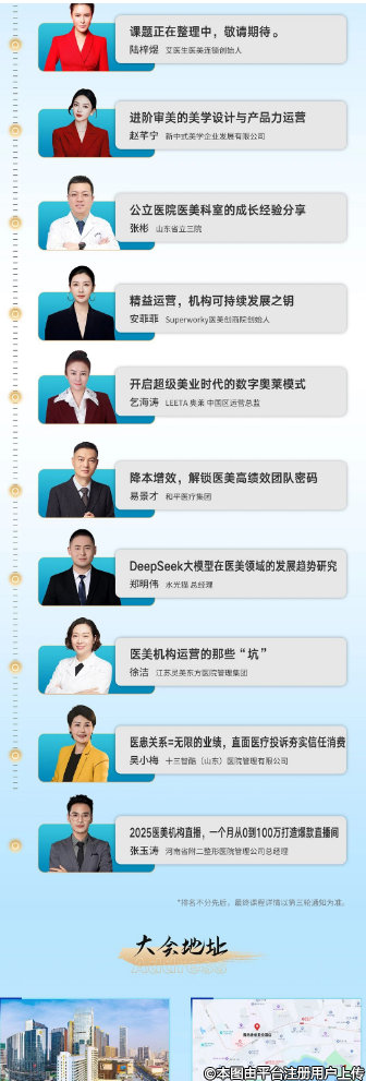 2025.3.28-30第六届整形大典-医学美容学术交流大会将要在美丽的青岛隆重召开,全国医美行业资深专家、获奖专家、整形大典全国医学编委及众多知名企业家欢聚一堂,共襄盛举。