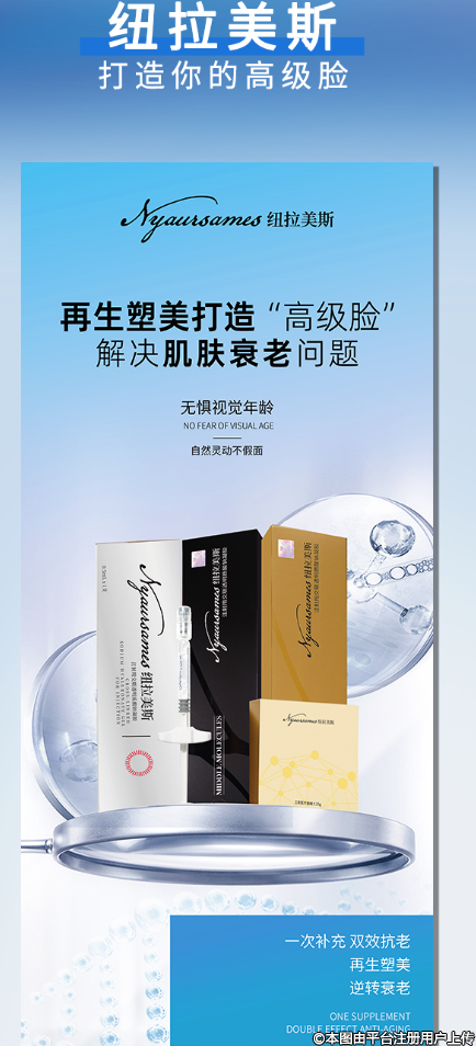金、银、黑三色包装,填充塑形,精准微调重塑面部轮廓,开启玻尿酸美学新篇。