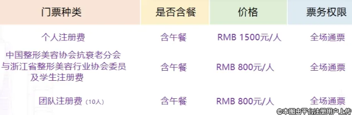 中国整形美容协会抗衰老分会与浙江省整形美容行业协会委员及学生 RMB 800元/人;