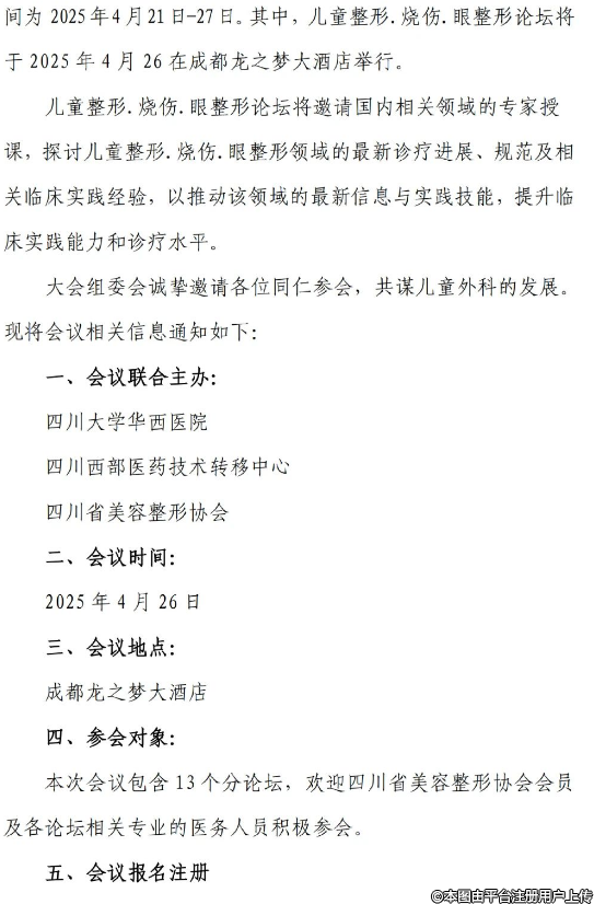 2025年四川大学华西医院“儿童整形.烧伤.眼整形学术论坛”会议通知.论坛课题征集