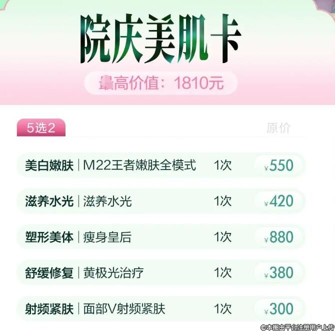 深圳博爱曙光整形33周年院庆 美肌卡5选2+2选1套餐组合