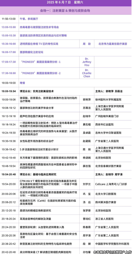 本届大会将以“创新引领、技术赋能”为主题,以当前医美市场为背景,设置丰富的学术报告、技术展示、专题论坛等内容,为行业同仁提供一个全面的、多维度的、高水平的学术交流平台。会议的内容涵盖微创技术的最新进展、临床经验分享、专家共识等多个方面,旨在通过思想的碰撞与经验的分享,为微创医学美容的可持续发展提供有力的支撑。在为期三天的大会期间,您将有机会聆听行业知名专家的精彩报告,参与多个主题论坛的深入交流,并与同行们共同探讨行业面临的新机遇与新挑战。