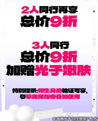 在组队能量站,2人同行是默契双赢,3人成团是快乐翻番总价折上折赠礼叠加、光子嫩肤免费解锁…拉上闺蜜、同事甚至那个总在图书馆偶遇的TA,