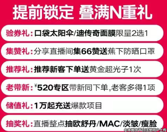 直播间发口令弹幕即可免费抽取瘦脸/淡皱/MAC口红/欧舒丹套盒数量有限,抢完即止!