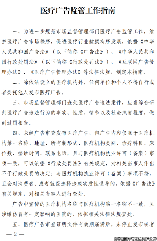 市场监管总局发布《医疗广告监管工作指南》