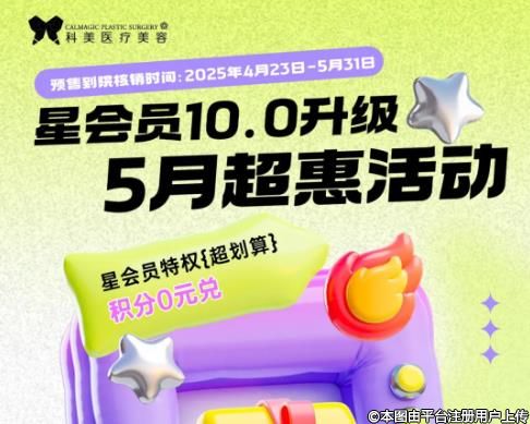 珠海科美整形会员5月重磅升级,积分狂送,秒杀低至1折