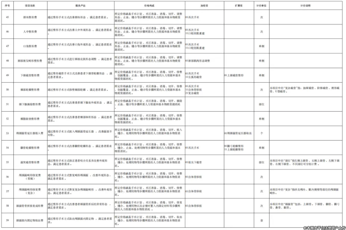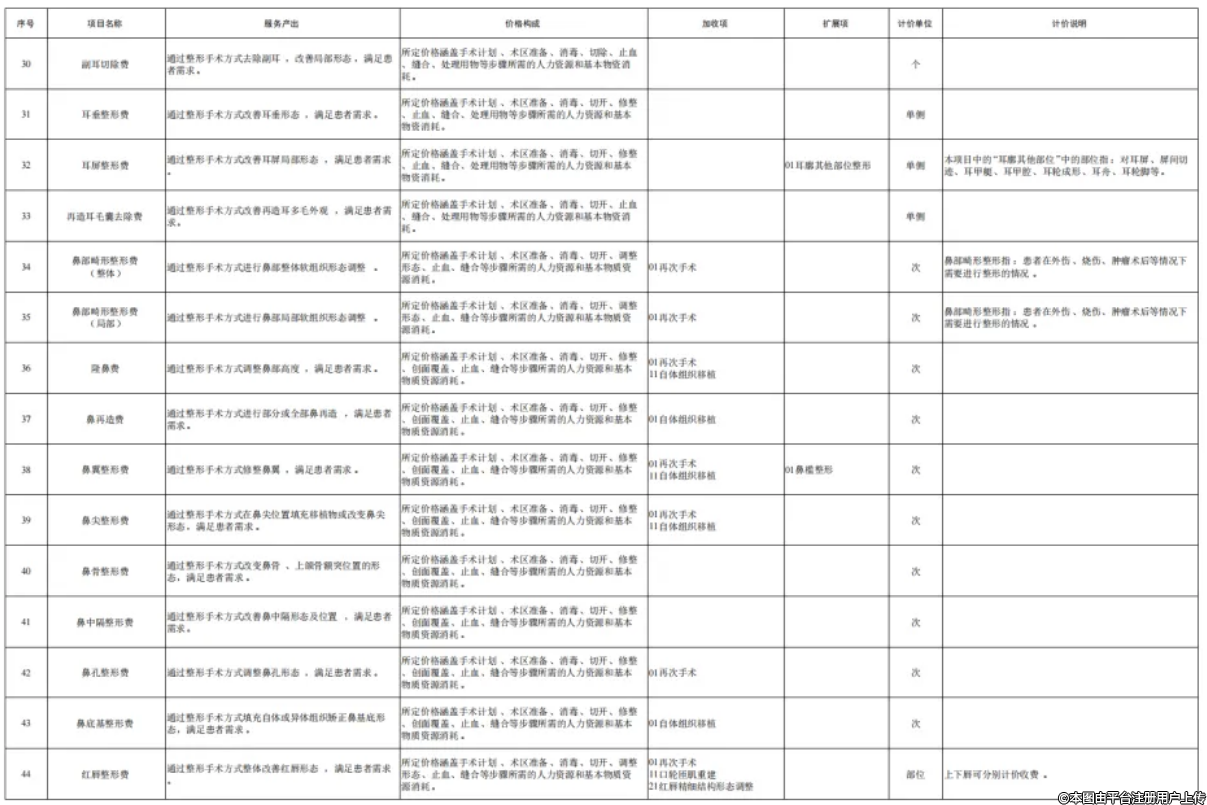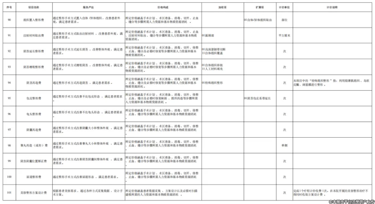 为贯彻落实《深化医疗服务价格改革试点方案》,推进全国医疗服务价格项目规范编制工作,按照“成熟一批、发布一批”的工作思路,近日国家医保局编制印发了《美容整形类医疗服务价格项目立项指南(试行)》,设立101项美容整形项目。下一步,国家医保局将指导各省医保局参考《美容整形类医疗服务价格项目立项指南(试行)》,指导有条件的医疗机构按照公平合理、诚实信用、质价均等的原则自主合理制定价格,并及时向社会公开公示。