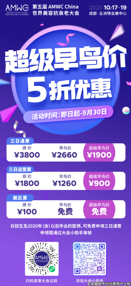 在这样的行业背景下,AMWC China 2025世界美容抗衰老大会强势来袭。这不仅是一场医美行业的盛会,更是行业发展的风向标。10月17日至19日,成都五洲情会展中心,一场汇聚全球医美前沿动态、顶尖技术和创新产品的盛宴即将拉开帷幕!