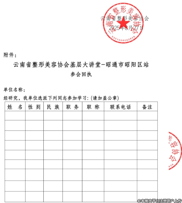 关于举办“云南省整形美容协会基层大讲堂-昭通市昭阳区站”的通知