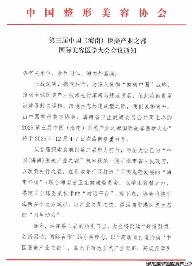 会议通知 I 第三届中国(海南)医美产业之都国际美容医学大会