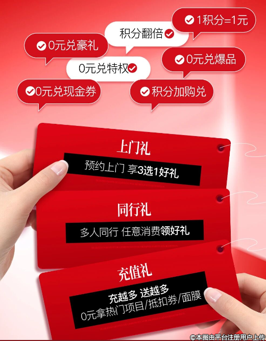 年终爆品,超级底价。积分最高可抵万元,数量有限,售完停止。会员积分当钱花,爆款美礼随心兑。无论是你想要肌肤水润白皙,高级精致的面部五官,还是年轻逆龄的颜值状态,积分都能兑!快来领取你的隐形资产。