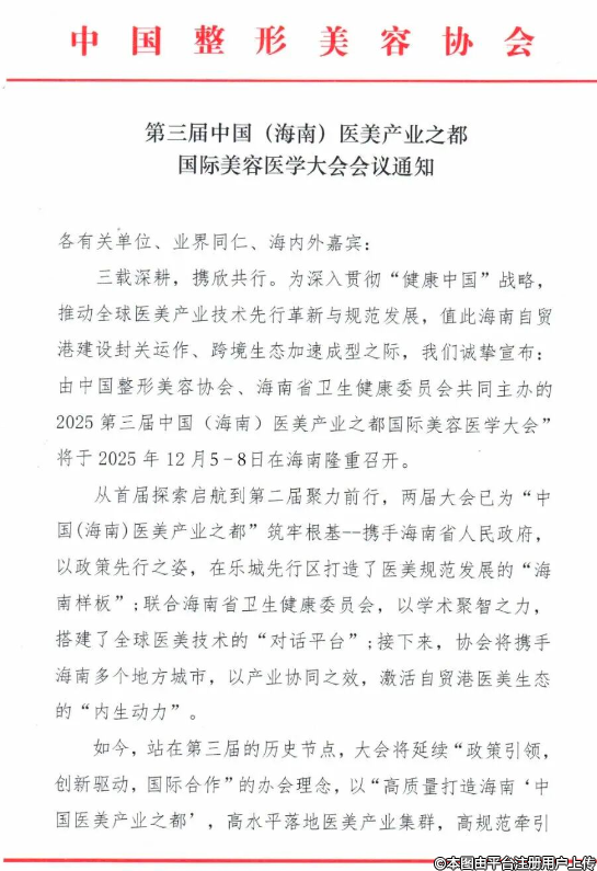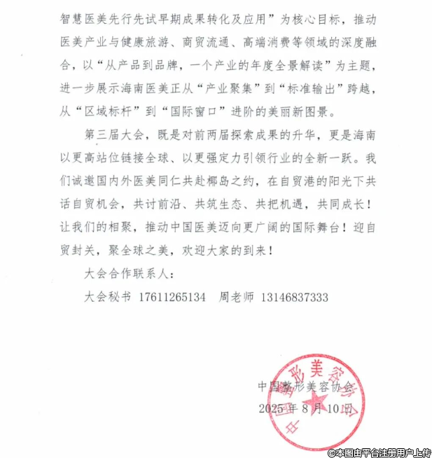 本次大会由中国整形美容协会、海南省卫生健康委员会共同主办。本次大会以“共享封关红利,共创医美未来”为主题,设立30多场论坛,旨在全方位探讨海南封关红利为医美产业带来的巨大时代机遇。