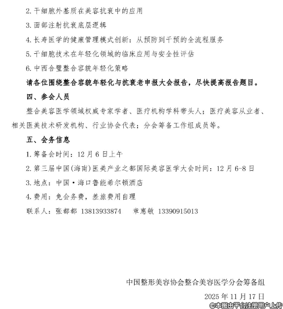 中国整形美容协会整合美容医学分会筹备会 整合容貌年轻化抗衰老论坛 12月6日·海口 |